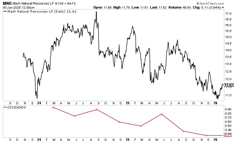 This allows Mach to target a peer-leading distribution to unitholders. Since 2024 alone, MNR stock had paid out $4.87 per unit. In December, the company paid a third-quarter distribution of $0.27 per unit, or $1.94 per unit on an annual basis, for a forward distribution yield of 16.5%.