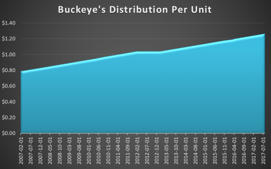 Source: “Distribution History,” Buckeye Partners, L.P., last accessed August 29, 2017.