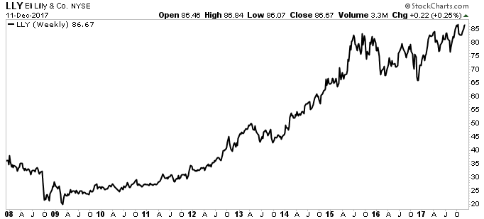 Today’s chart highlights another quiet winner in the health care business…Eli Lilly and Co (NYSE:LLY).